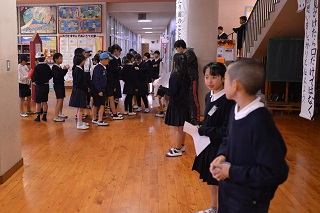 昼休みには、台湾の学校へ研修に行く子どもたちに校長先生が親書を託されました。よろしくね!