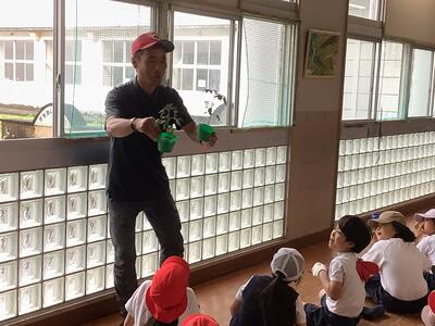 今年も、熊本野菜育苗センターから山本さんに来ていただき、野菜の植え方を教えていただきました。