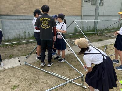 6年生はリーダー制をとり、運動会に向けて頑張っています。運動会ではテントが必要になってきます。これまでは先生たちで立てることが多かったのですが、今年は「自分たちで運動会をつくりあげる」ために、環境面にも目を向けています。リーダーの名前は「環境マネジメントリーダー」。早速、今週の朝からテント立てに取り組んでいます。「初めてやったけど、こんなに大変だったんだ…」と新たな発見もあったようです。ですが、2回目になると手際もよくなり素早く立てることができました。いよいよ全体練習も始まり、本格的に動き出してきました。暑い中の練習にもなるかもしれませんが、大津小みんなで頑張っていきます!
