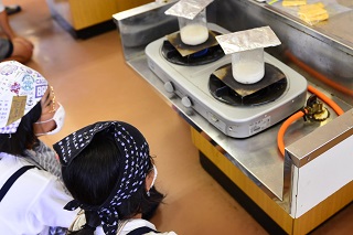 米に給水したものと、していないものをガスを使って炊いて味を比べました。