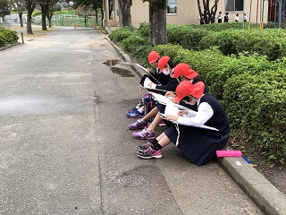 今日は1年生が秋を探しに、かぶとむし公園と中央公園へ行きました。