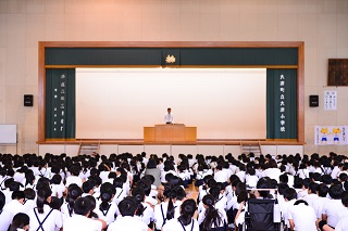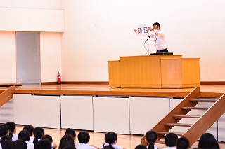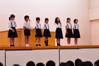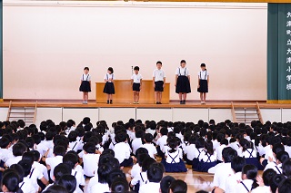 今日は後期の始業式です。3年生、6年生の児童が後期に頑張ることを発表しました。