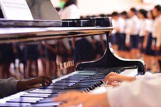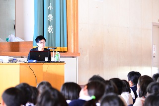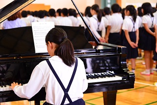 校歌の伴奏を児童が弾きました。とても緊張しながらも頑張っていました。