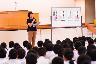 挨拶についてのお話を聞きました。挨拶をする理由がよくわかりましたね!