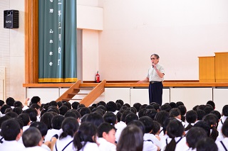 消防署の方に来ていただき、火災時の避難についてのお話をしていただきました。