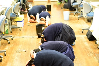 今日は地震に対するショート訓練「いま、ゆれたらどうする!?」が行われました。
