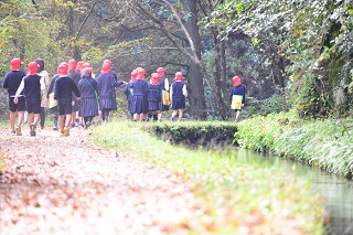 今日も朝からたくさんの子どもたちが落ち葉掃除に出ています。