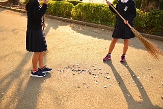 今日も朝から先生と一緒に、学校をきれいにする子どもたちの姿が見られました。