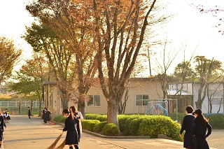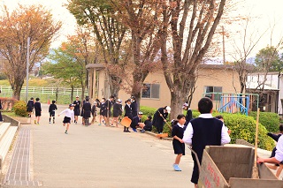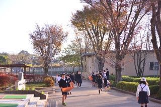 今日の学校の様子です。落ち葉が増えて、朝の掃除も大変です。