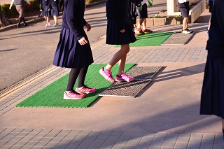 朝から生活安全委員会の呼びかけで、靴についた土を落とす姿が見られます。
