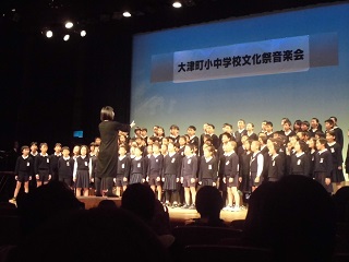今日は4年生が大津小中学校文化祭音楽会に出場しました。
