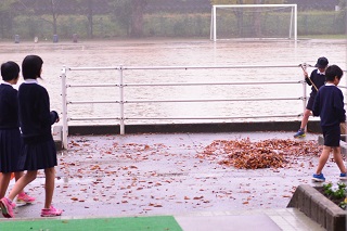 今日の学校の様子です。台風が通り過ぎ、多くの葉が散っていましたが、朝から、みんなで掃除をして、きれいにしました。
