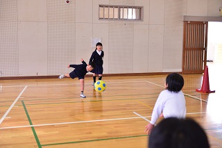 今日の学校の様子です。5年生のサッカーをしている様子が見られます。