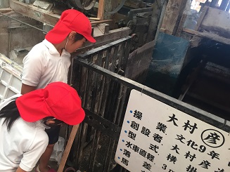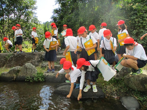 8月26日(金)、2年生の生活科「町たんけんをしよう」の学習で、矢護川公園と彦しゃん水車に行きました。矢護川公園では、おもいっきり川遊びを楽しみました。彦しゃん水車では、水の力で動く機械に感激しながら見学させていただきました。次はどんなところに町たんけんに行けるか楽しみです。