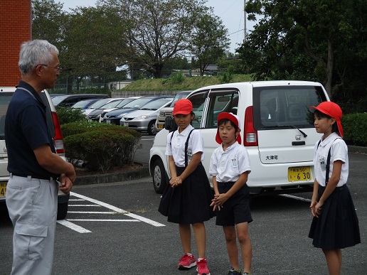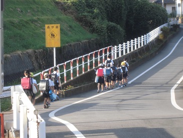 今週は大津小学校の職員が分担して、各所で交通指導を行っています。大津小学校の子どもたちは、登校班で「1列」に並んで歩き、気持ちのよい「あいさつ」ができていると思います。子どもたちの良いところを更に伸ばすためにも、引き続き、家庭・地域の皆さまのご指導をよろしくお願いします。