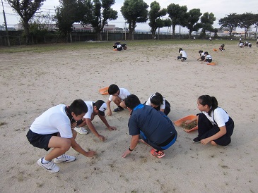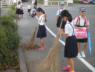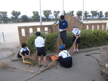 夏休みが明けてから、先生と一緒に落ち葉をはく児童が少しずつ増えてきました。朝からのボランティア活動は気持ちがいいですね。今日からは、5・6年生を中心に運動場の草取りを頑張ってくれました。