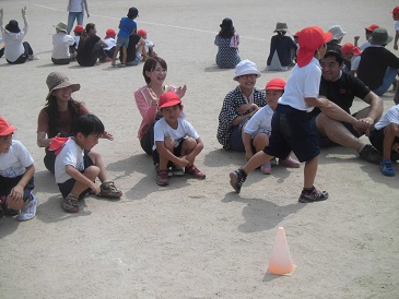 秋空の快晴の中、大津小学校の運動場で、1年生の学年レクレーションが行われました。B-Smileインストラクターの富田さん、荒木さんを講師に迎え、親子でダンスや体操などをしました。親子で少し汗をかく程度のちょうどよい運動をすることができました。その後、各クラスで自己紹介をしました。子ども同士の交流や保護者同士の親睦を図ることができました。