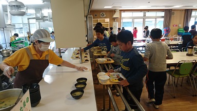 校区探検で給食センターに見学に行きました。いつも何気なく食べている給食が実際に作られているところを見て、子どもたちはたくさんの発見をしました。作っている量の多さ、置かれている機械の大きさ、作っている人の少なさなどに驚いていました。これからは、今までよりも給食にありがたみを感じて食べることができると思います。
