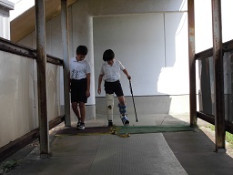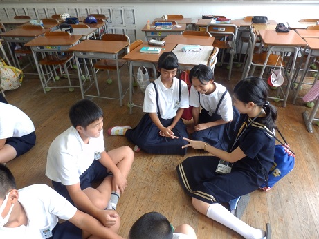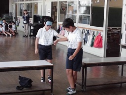 大津町社会福祉協議会の方をお招きし、福祉体験をしました。今年は、車いす体験、アイマスク体験、高齢者模擬体験をしました。これらの体験を通じて、声をかけ合うことや相手の立場に立って考えることの大切さを学びました。会の最後には協議会の方から、「隣にいる友だちや家族、身近な人を大事にしてくださいね。」という温かいメッセージも頂きました。