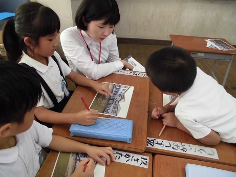 7月25日(月)~7月28日(木)の4日間、大津小学校の図書室やパソコン室などを使って、夏休み学習会が行われました。2年生から6年生までの200名ほどの児童が学習会に参加しました。また、大津中学校の生徒10名、大津高校の生徒13名が学習ボランティアとして、大津小学校の児童のために協力してくれました。優しいお兄さんお姉さんに勉強を教えてもらい、子どもたちは嬉しそうに勉強していました。