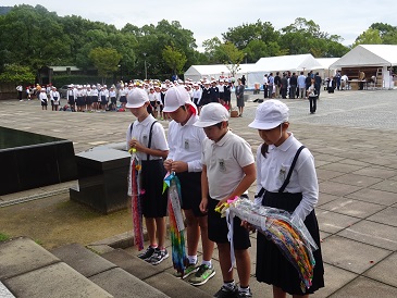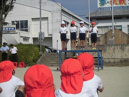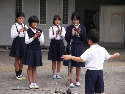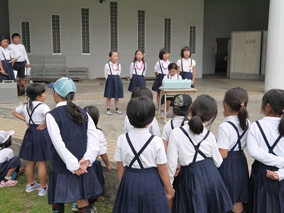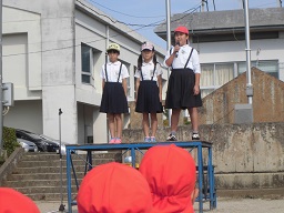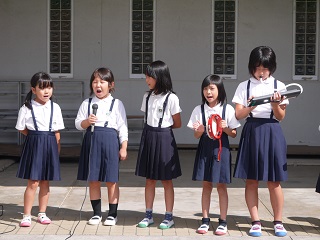 2時間目に運動場で前期終業式を行いました。2年生と4年生の代表児童が、前期の反省と後期の目標を発表しました。前期では水泳を頑張ったという発表や後期では発表を頑張りたいなど、一人一人が自分の思いを全校児童に伝えることができました。