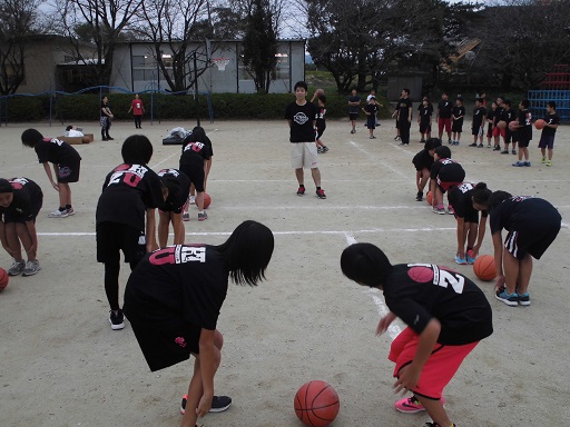 体育館が使用できない大津小学校のバスケットボール部のために、チーム熊本という支援団体から、移動式バスケットゴールとバスケットボールを頂きました。校長室での贈呈式を行った後、放課後に熊本のバスケットボールチーム“ボルタ-ズ”の選手達が、大津小学校の子どもたちに指導してくれました。子どもたちは、プロ選手から指導をして頂きとても喜んでいました。