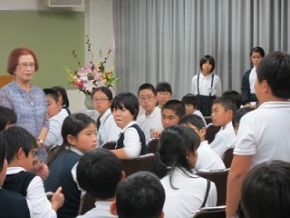 岐阜県海津市立平田中学校から緊急派遣の養護教諭として本校で3ヶ月間勤められた渡邊実里先生が、本日で最後の勤務となりました。給食の時間の放送で、全校児童に温かいお話しをして頂きました。笑顔が本当に素敵な先生でした。ありがとうございました。
