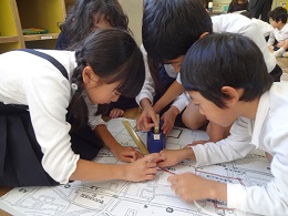6年1組では、「班別行動を成功させよう」の学習を行いました。6年生は修学旅行でハウステンボスに行きます。その際に、約4時間の班別行動を行います。時間内により多く回るための移動にかかる時間の出し方を班ごとに考えて比べました。いろんな考えが出てきたことで、それぞれの考えのよさに気づいたり、比較したりして、自分だったらどの考えがいいかを出し合うことができました。