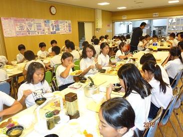 お昼ご飯は、大津小学校、大津東小学校、大津南小学校の三校で一緒に食べました。おいしいお弁当を食べながら交流することができました。