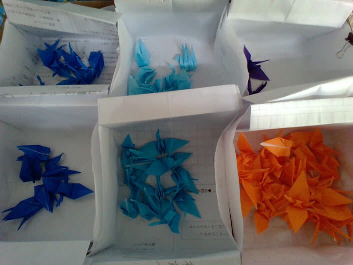 6年1組、2組、3組全てのクラスで千羽鶴を折り終えました。