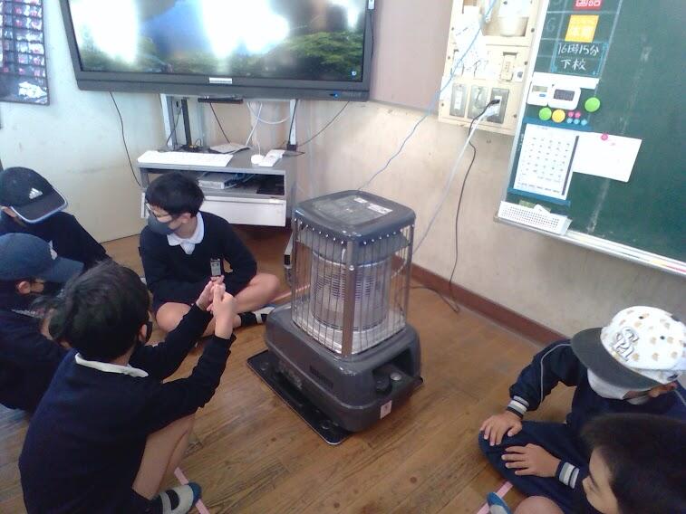 今日の朝、教室にストーブが来ました。友達は、ストーブの近くで本を読んだり、話をしたりして、冬の寒さを気にせずゆったりと過ごしていました。これで、冬の寒さは安心です。