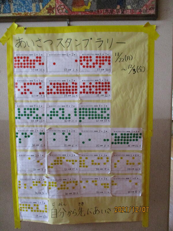 今日まで2週間、生活安全委員会が取り組んできた「あいさつスタンプラリー」が終わりました。
