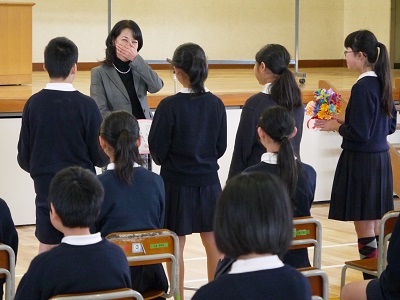 新しく改修された体育館で、修了式が行われました。各クラスの代表が修了書を受け取り、校長先生のお話が終わった後にサプライズがありました。6年生からご退職される校長先生の卒業証書の授与が行われました。とても温かい修了式になりました。