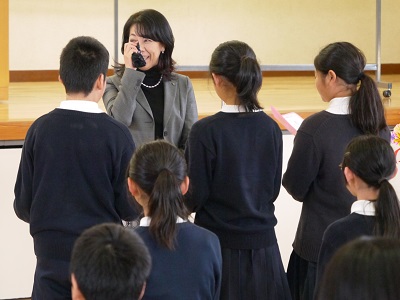 震災後の児童のケアのため、岐阜市立城西小学校から大津小学校へ赴任し、一月からの三ヶ月間、本校の子どもたちの心と身体の健康を見守って頂きました。子どもたちだけでなく、先生方も励まし支えて頂きました。本当にありがとうございました。