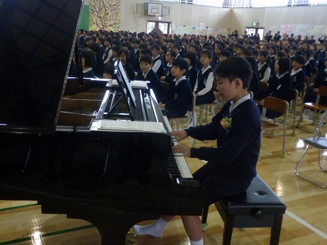 今年度最後のきらきら集会がありました。今回は、ダンス&歌や竹馬とダンス、鍵盤ハーモニカの演奏などバラエティー豊かな発表でした。また、先生方も参加し、子どもたちと一緒に歌い踊りました。来年のきらきら集会も楽しみです。