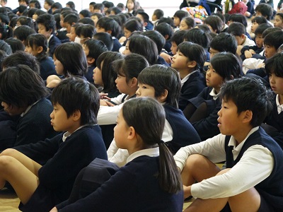 5年生6年生のお兄さん、お姉さんも拍手で迎えています。