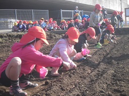 小学校の近くの畑に行き、麦の種まき体験をしました。地域の坂本さんに麦について説明を受けた後、種をまいて土をかぶせました。2月には麦の芽が生長し、今度は麦踏み体験をします。麦の生長が待ち遠しいです。坂本さん、これからもよろしくお願いします。
