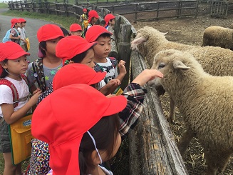 1年生はミルク牧場へ見学に出かけました。動物ふれあい体験では、犬やモルモット、パンダマウスと触れ合いました。その他にも、牛や黒豚、カモ、ひつじ、ヤギなどの動物たちを見学しました。ひつじレースでは、子どもたちはレースの行方に夢中になり、立ち上がって歓声を上げていました。