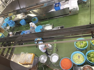 校区探検で給食センターに見学に行きました。いつも何気なく食べている給食が実際に作られているところを見て、子どもたちはたくさんの発見をしました。作っている量の多さ、置かれている機械の大きさ、作っている人の少なさなどに驚いていました。これからは、今までよりも給食にありがたみを感じて食べることができると思います。