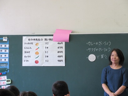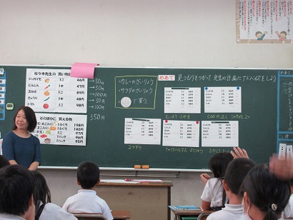 3年2組では、「買い物の計画を立てよう」の学習を行いました。授業では、商品の単価や予算額、購入希望条件などを考慮して、買い物の計画を見直しました。3年生は見学旅行で子飼商店街で買い物をします。今日の授業で学んだことを見学旅行で活かすために、予算内でどのようなものを買うか考え、商品購入の理由や計算方法を明確にして自分の購入計画を立てていきます。