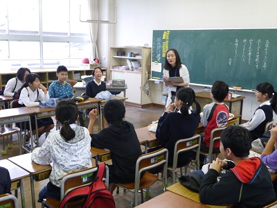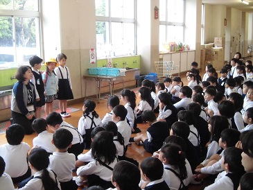今日から南阿蘇西小学校の子どもたち21名が大津小学校に登校してきました。始めに、図書室で大津小学校について説明を聞きました。その後は、各学年に分かれ、新しいお友達の紹介がありました。