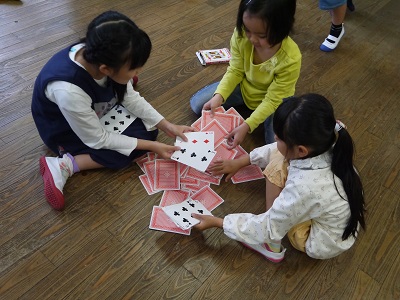 そこで、大津小学校では、4月27日(水)から学校開放を行っています。子どもたちは、登校後、学級ごとに担任と1人1人話をした後、体操やお絵かき、工作、ゲームなどをして楽しい時間を過ごしました。