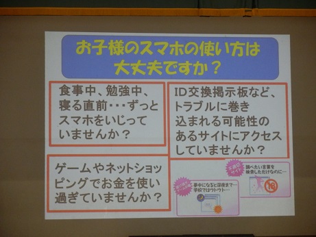 今年度1回目の土曜日授業が行われました。1時間目は授業参観でした。1・2年生は「地震の発生と防災」について学習しました。その後、体育館でPTA講演会が行われました。講師にスクールサポーターの竹下 興治さんをお招きし、演題「情報化社会に生きる子どもたち~光と影~」について講演して頂きました。11:45からは地区ごとに保護者への児童引き渡しを始め、約20分間で引渡訓練は終わりました。保護者の皆様のご協力ありがとうございました。