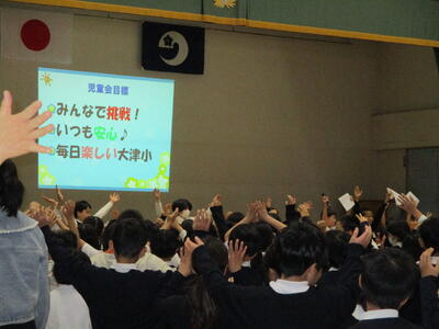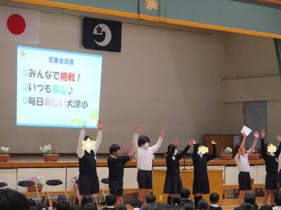児童会から、「大津小ブランド」と「児童会目標」の発表がありました。