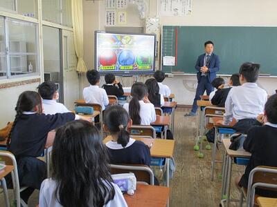 その後、始業式。校長講話では、「大津小学校をみんなでつくる」ための行動を伝えました。