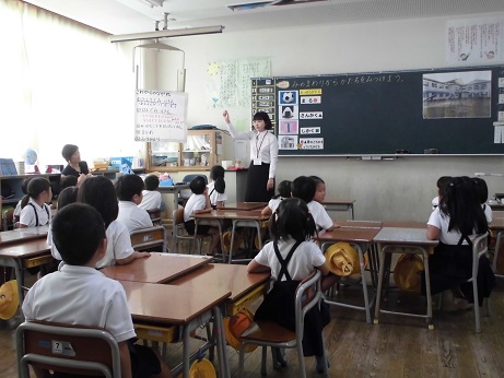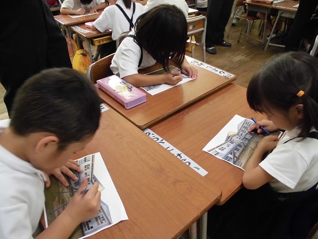 1年3組では、「みのまわりから、かたちをみつけよう」の学習を行いました。1年生はこれまでに、形からものを想像して絵を描いたり、形を組み合わせてものをつくったりした経験はある。授業では、写真の中に、まる、さんかく、しかくのような形やそれらが組み合わさった形を見つけました。子どもたちは、写真の中から形を見つけ、身の回り形があることに気づき、これからたくさんの形を見つけようと思いました。