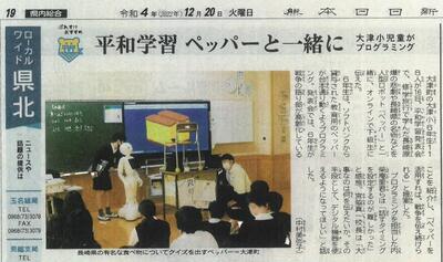 6年生が取り組んだプログラミング学習の様子が、熊本日日新聞で報道されました。