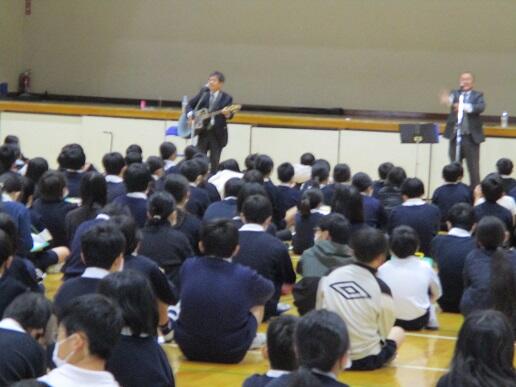 力強い歌とメッセージが、体育館に響き、心にじんとしみた素敵な時間でした。