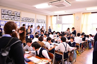 活動を見に近くまで来たお父さん、お母さんに緊張です。