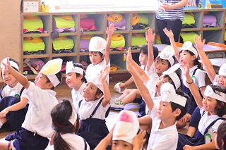 授業中の様子です、1年生の「おおきなかぶ」の授業の様子です。